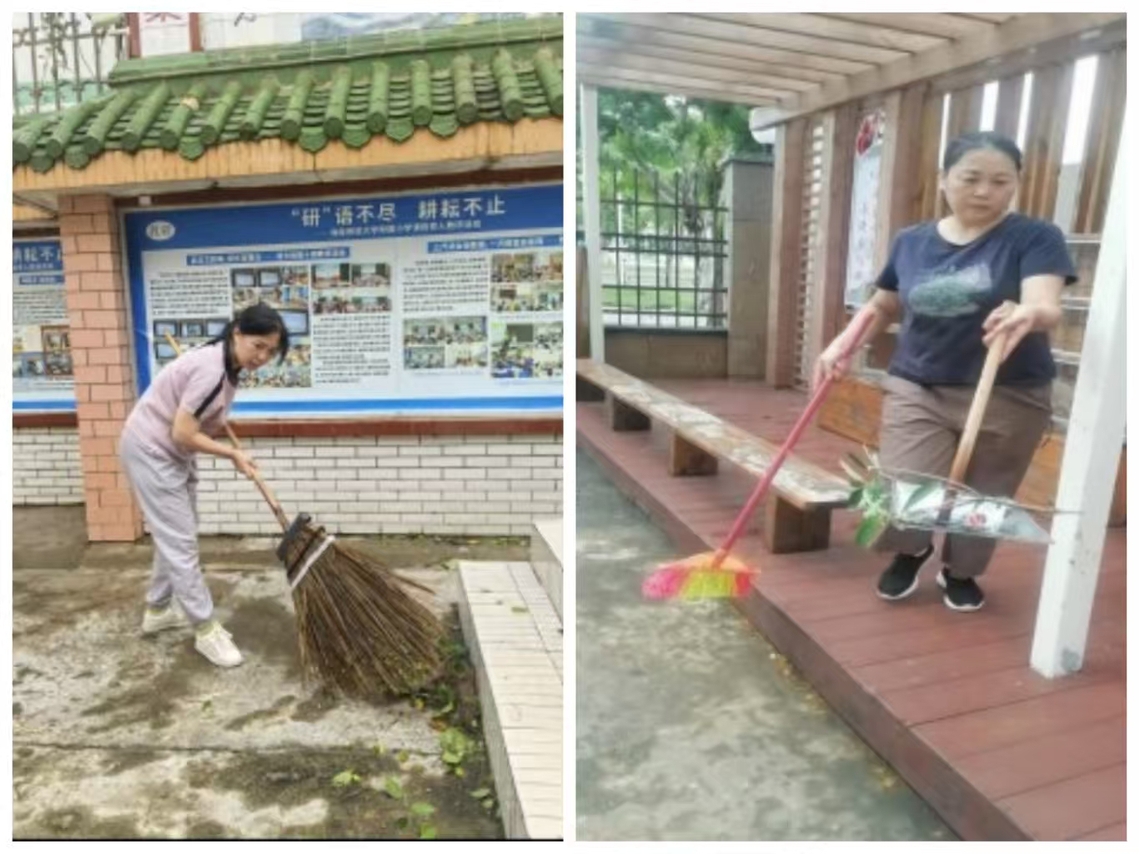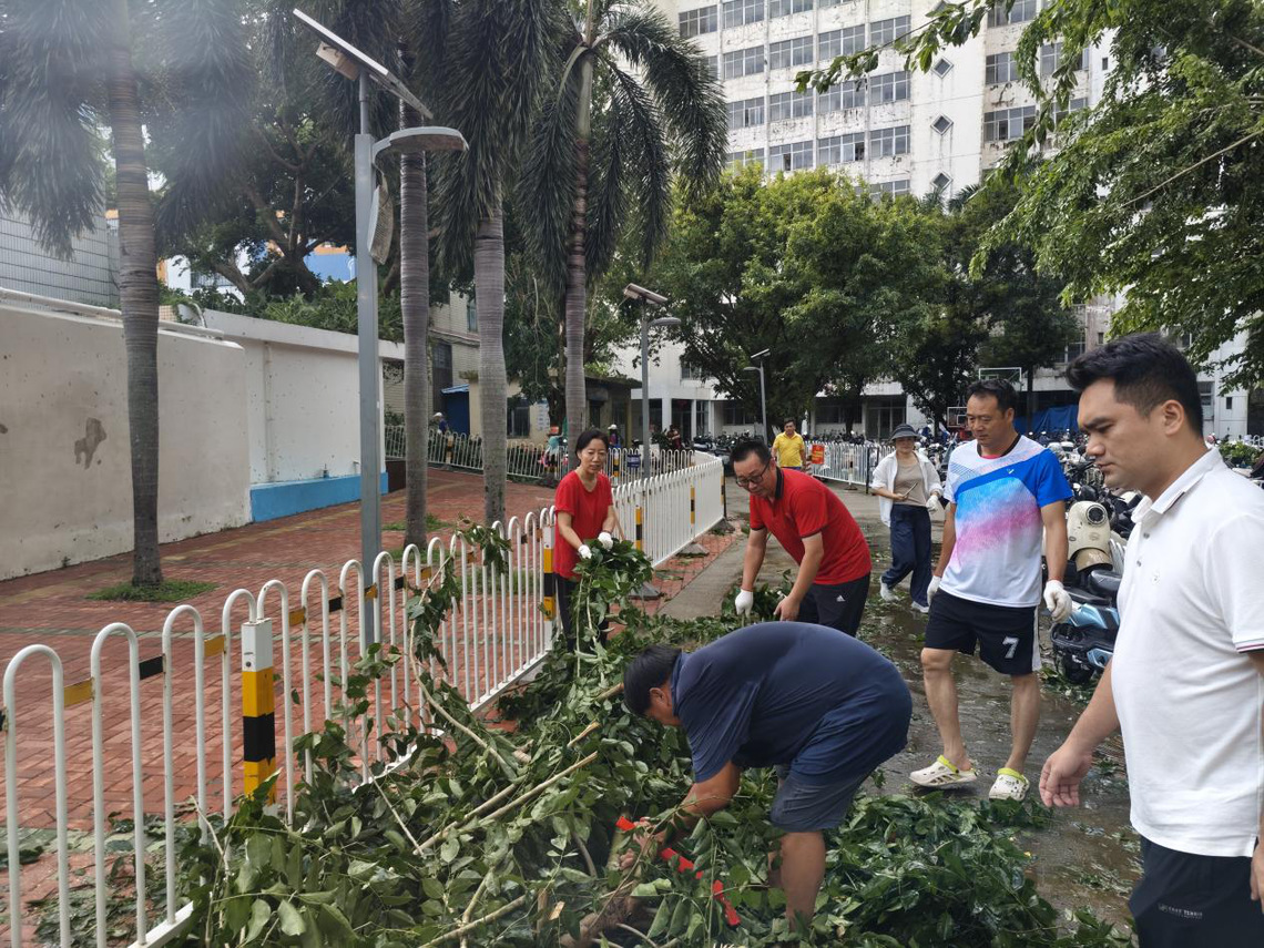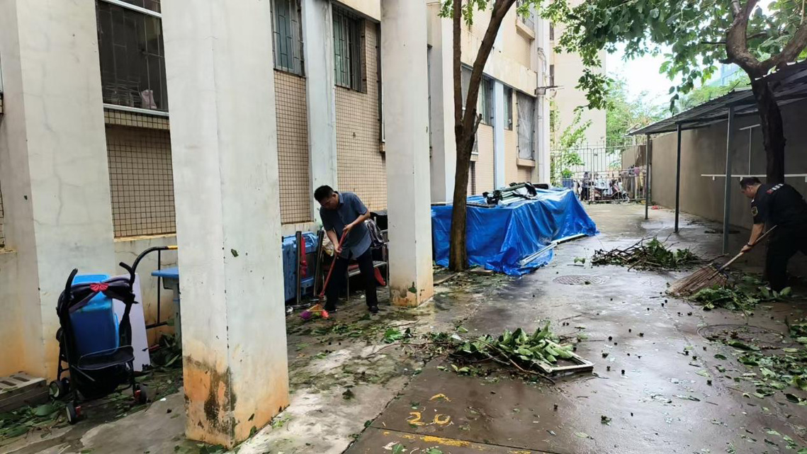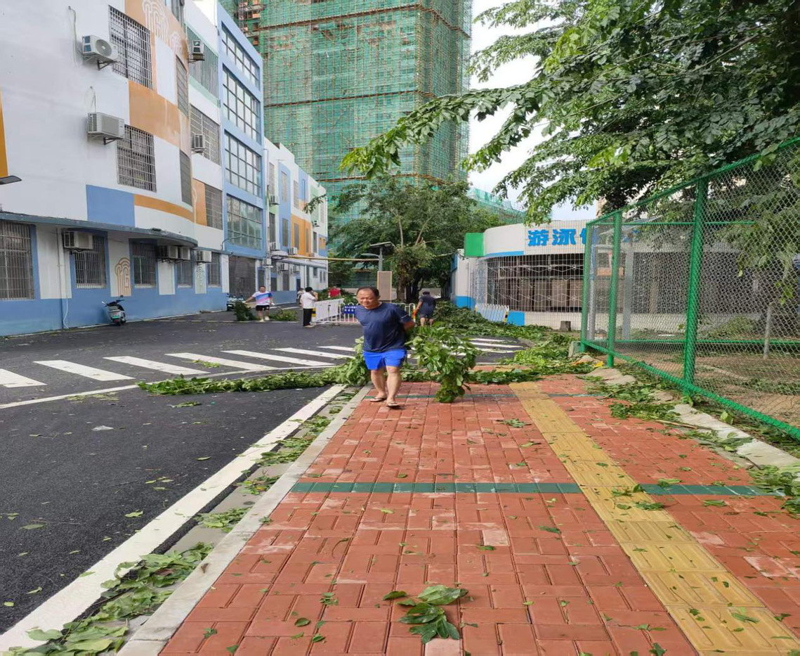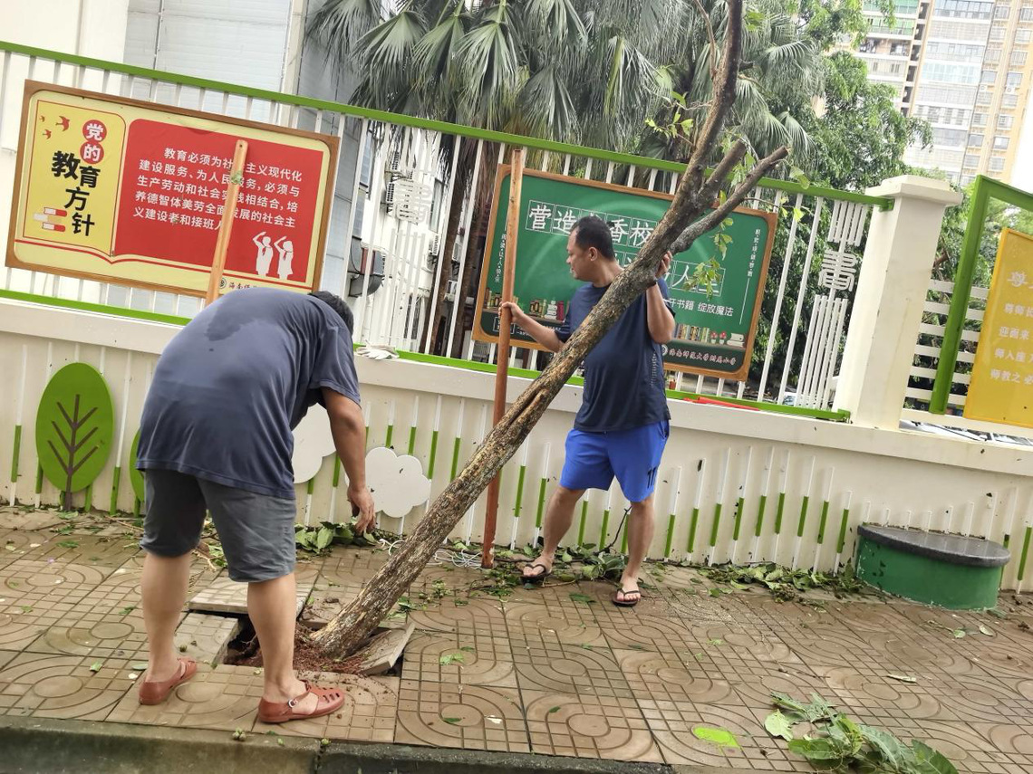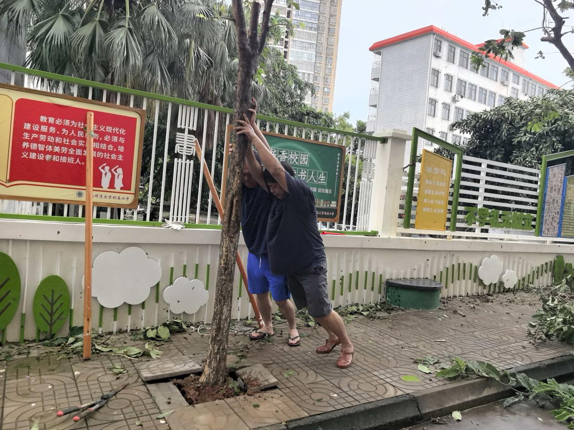 台风过后,校园内随处可见倒伏的树木枝叶、淤积的污泥和杂物,部分设施也受到不同程度的影响。按照海师大校长专题会议要求,附小党支部书记、校长梁胜娟带领巨乳做爱班子成员,积极组织在海口的教职工迅速返校,高效开展灾后清理修复工作。大家分工明确,默契配合:有的挥动扫帚清理落叶断枝,有的手持高压水枪冲洗地面淤泥,有的合力扶正加固被风吹倒的绿植,有的仔细检查电路、教学设备的安全状况……汗水湿透了衣背,但没有人叫苦叫累,心中只有一个共同的信念——尽快让校园恢复原貌,为孩子们提供一个干净、安全的学习环境。