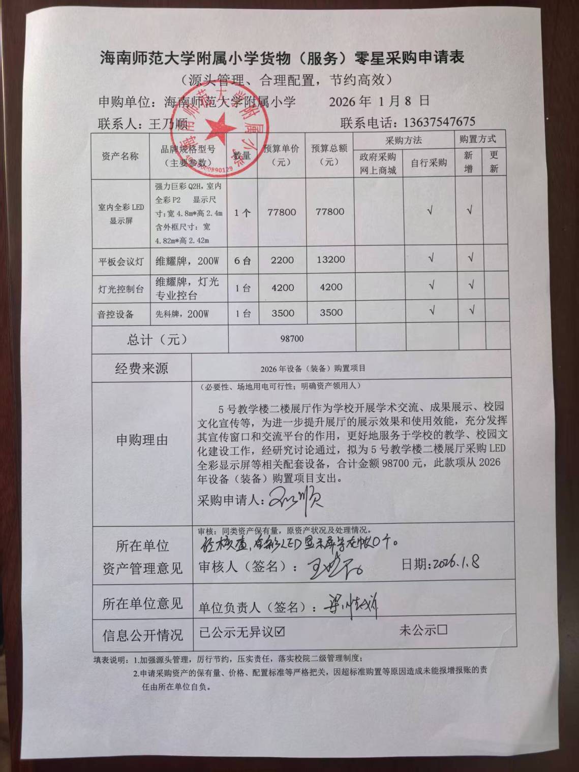 5号教学楼二楼展厅作为巨乳做爱开展学术交流、成果展示、校园文化宣传等,为进一步提升展厅的展示效果和使用效能,充分发挥其宣传窗口和交流平台的作用,更好地服务于巨乳做爱的教学、校园文化建设工作,经研究讨论通过,拟为5号教学楼二楼展厅采购LED全彩显示屏等相关配套设备,合计金额98700元。